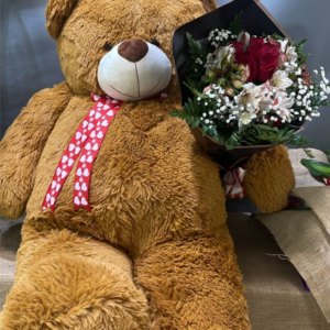 Hermoso Oso de peluche de 1 metro de alto acompañado de un ramillete de 12 rosas del color de su elección