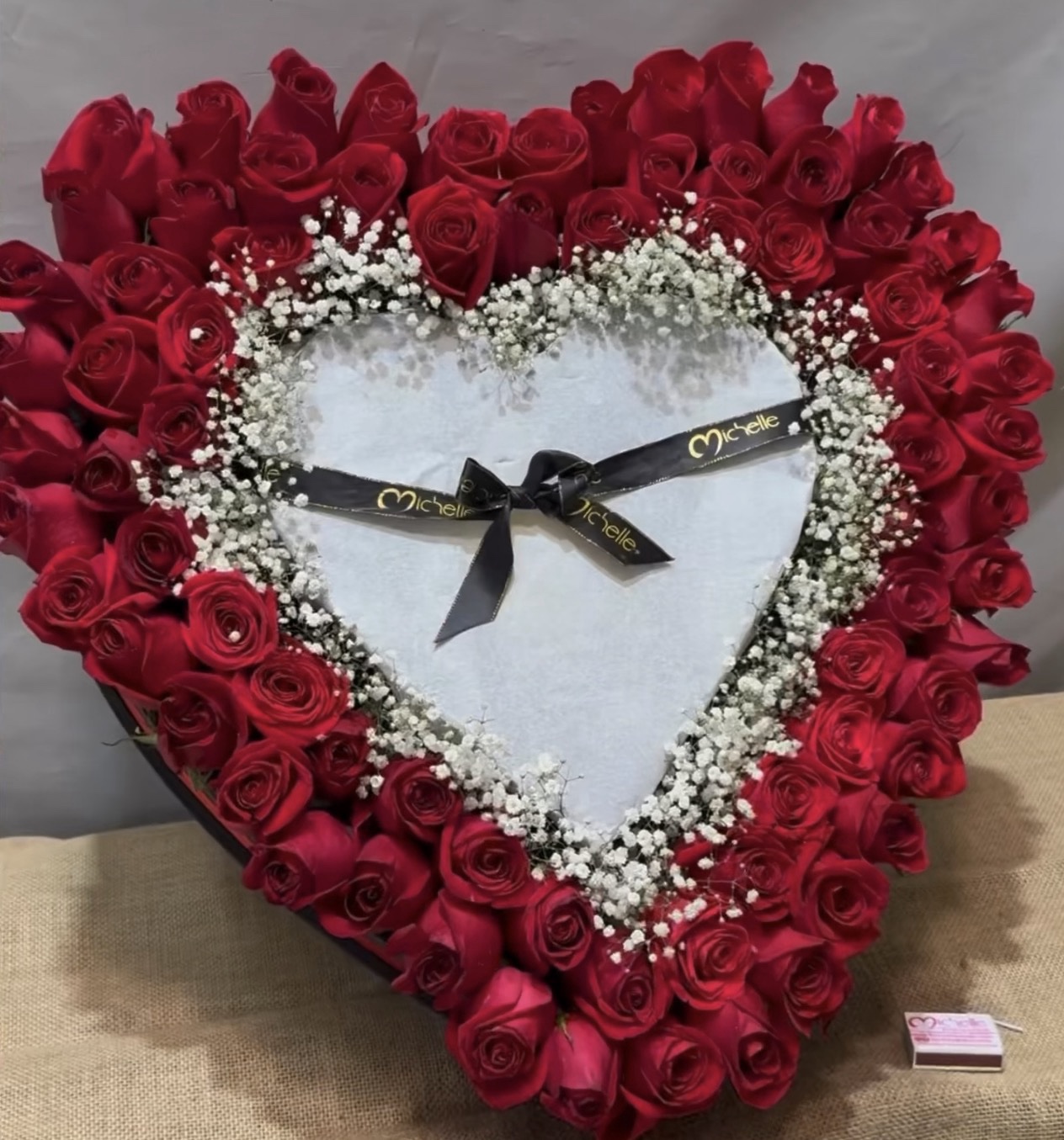 Corazón de 75 rosas y 12 bombones Ferrero Rocher integrados en el centro.